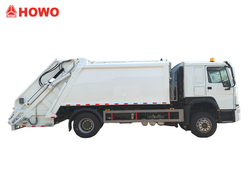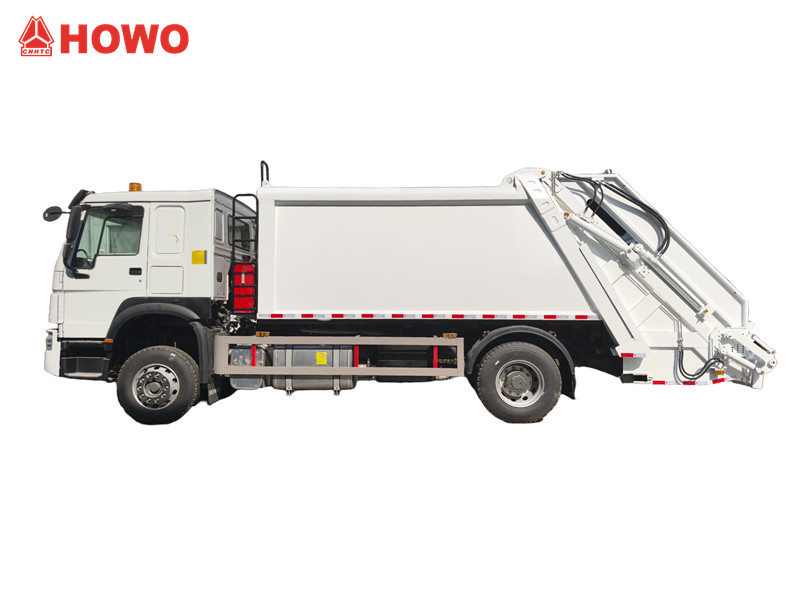El camión compactador de residuos Howo consta de un chasis, un compartimento para basura, un sistema hidráulico, un sistema de control y un mecanismo de giro de la cuchara. El compartimento completamente cerrado evita eficazmente que la basura se disperse y se derrame durante el transporte, manteniendo las carreteras limpias. Un mecanismo de giro de la cuchara o dispositivo de descarga en la parte trasera vacía automáticamente la basura en el compartimento del camión, reduciendo significativamente el trabajo manual.