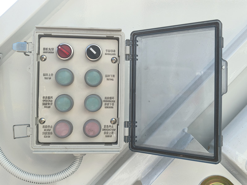 El vehículo está equipado con iluminación nocturna, luces de advertencia y marcas reflectantes para mejorar la seguridad durante las operaciones nocturnas y en terrenos difíciles. La cabina del operador cuenta con un sistema de control electrónico que permite realizar fácilmente las operaciones de compactación, descarga y vaciado mediante botones o un control remoto. Su funcionamiento es sencillo y requiere bastante esfuerzo físico.