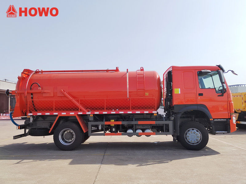 El camión de succión de aguas residuales HOWO 4x2 combina funciones de succión y transporte. Equipado con una potente bomba de vacío, genera una enorme fuerza de succión, extrayendo rápidamente lodos, aguas residuales y escombros de alcantarillas, fosas sépticas y pozos de aguas residuales hacia un tanque específico.El cierre hermético del tanque evita fugas y contaminación secundaria. Camión de succión de aguas residuales HOWO 4x2 Es maniobrable y puede circular por calles estrechas. Se utiliza ampliamente en el saneamiento municipal, propiedades residenciales, fábricas y otros ámbitos, gestionando eficazmente todo tipo de residuos y desempeñando un papel fundamental en el mantenimiento de un entorno limpio y ordenado.  Los componentes principales del camión de succión de aguas residuales HOWO 4x2 incluyen una toma de fuerza (PTO), un eje de transmisión, una bomba de vacío, un tanque de presión, un sistema hidráulico, una red de tuberías, un manómetro de vacío, un visor de heces y un dispositivo para el lavado de manos. Utiliza una bomba de vacío de última generación con alta potencia de succión y un amplio alcance, lo que la hace especialmente adecuada para la succión, carga y descarga de lodos de alcantarillado. Su diseño compacto y circular del tanque le permite soportar presiones más altas y proporcionar una mayor potencia de succión.  1. Profesionalismo y eficienciaLa principal ventaja del camión aspirador HOWO reside en su diseño especializado, que permite el procesamiento rápido de lodos, aguas residuales y sedimentos. Equipado con una bomba de vacío de alta potencia, ofrece una eficiencia de succión excepcionalmente alta, vaciando un tanque completo en tan solo 5 minutos, con un alcance de succión de hasta 8 metros, lo que mejora significativamente la eficiencia operativa. Este alto rendimiento permite completar las tareas con rapidez, reduciendo la necesidad de mano de obra, especialmente al lidiar con obstrucciones repentinas o en operaciones de desarenado a gran escala.  2. Funcionamiento cómodo y alta adaptabilidad.El sistema de control del vehículo, de diseño intuitivo, permite al conductor dominar fácilmente las diversas funciones operativas. Además, el camión cisterna de vacío HOWO se adapta a diversos entornos operativos, lo que garantiza un funcionamiento fiable en carreteras urbanas, pueblos y aldeas rurales, e incluso en obras de construcción de oleoductos complejas y de difícil acceso. Esta amplia adaptabilidad le permite satisfacer las necesidades de diversas regiones y condiciones de trabajo.  3. Seguridad, fiabilidad y durabilidadEl camión de succión de aguas residuales HOWO 4x2 utiliza acero de alta calidad y tecnología de sellado avanzada para garantizar una estructura estable y a prueba de fugas. La robusta y duradera carcasa del tanque no solo previene eficazmente las fugas, sino que también prolonga la vida útil del vehículo. Asimismo, el vehículo ofrece una excelente estabilidad y seguridad durante su funcionamiento, garantizando la seguridad de los operarios y del entorno laboral, y brindando un sólido soporte para operaciones de alta intensidad y larga duración.
