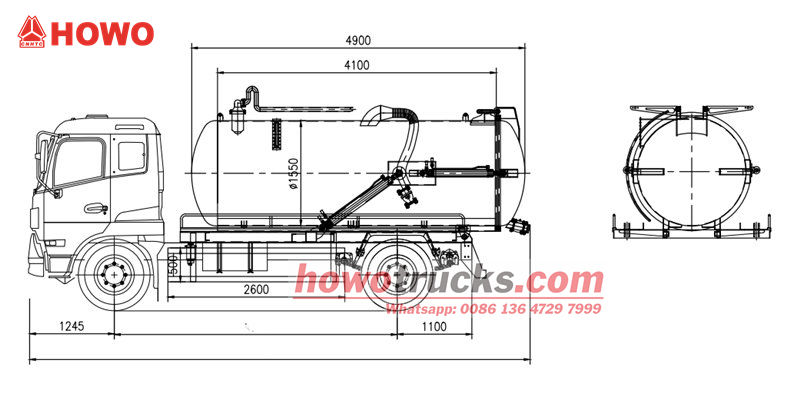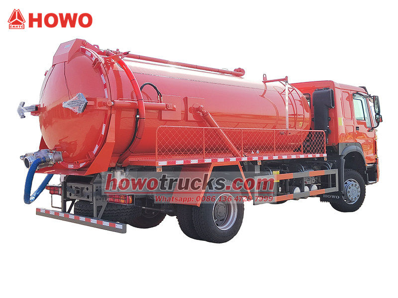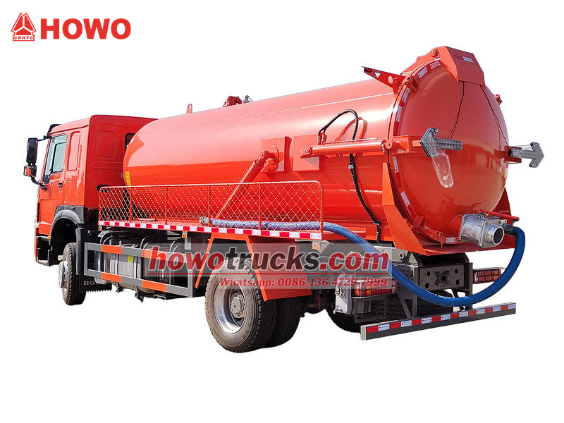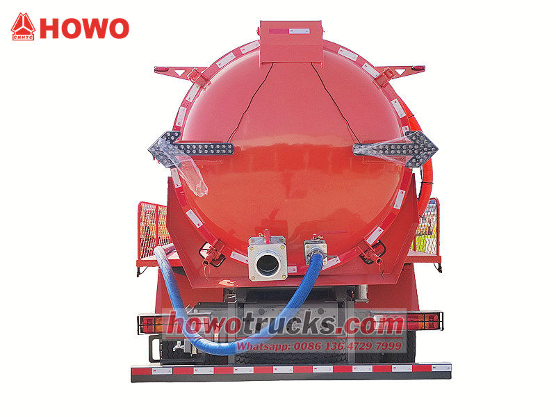 ●El camión de succión de aguas residuales Howo utiliza una bomba de vacío para generar una alta presión negativa, creando un vacío dentro del tanque.