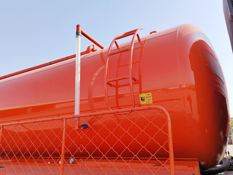 ●El vehículo está equipado con un dispositivo hidráulico de autodescarga que inclina el tanque para permitir que el lodo se deslice automáticamente, mejorando así la eficiencia de la descarga. Todo el proceso es cerrado y libre de contaminación, lo que garantiza una operación segura y eficiente.