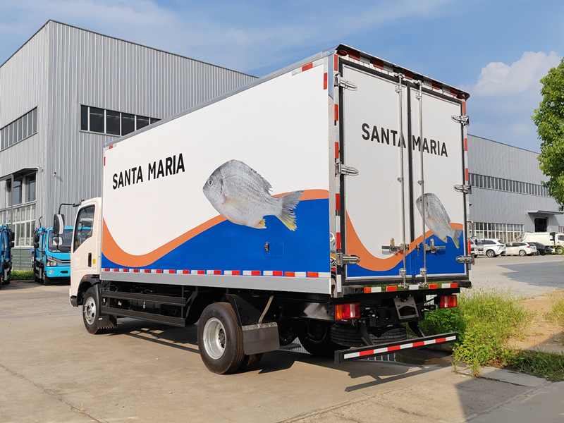◇La puerta doble de tamaño completo en la parte trasera facilita el acceso con montacargas, lo que mejora la eficiencia de carga y descarga. • Capacidad de carga: Capaz de transportar 5 toneladas de marisco, apto para el transporte a granel en puertos pesqueros, mercados mayoristas y otros lugares.