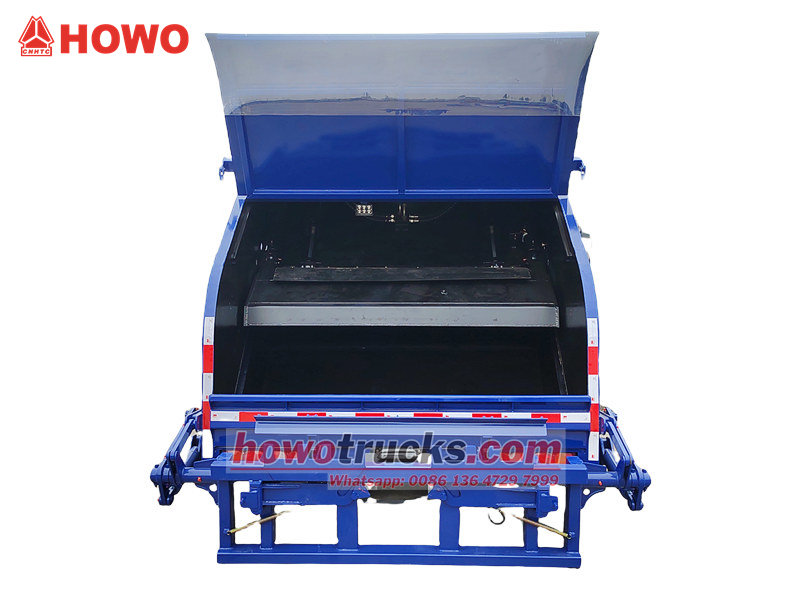 El contenedor de basura está fabricado con chapa de acero de alta resistencia y resistente a la intemperie, con paneles laterales moldeados en una sola pieza. El compartimento tiene un excelente sellado, evitando fugas de aguas residuales y la propagación de olores, lo que lo hace ecológico y eficiente. Camión recolector de basura Howo con compactación trasera Es adecuado para la recolección y el transporte centralizado de residuos domésticos en ciudades, zonas residenciales, fábricas y otros lugares. Es fácil de operar, seguro y confiable.
