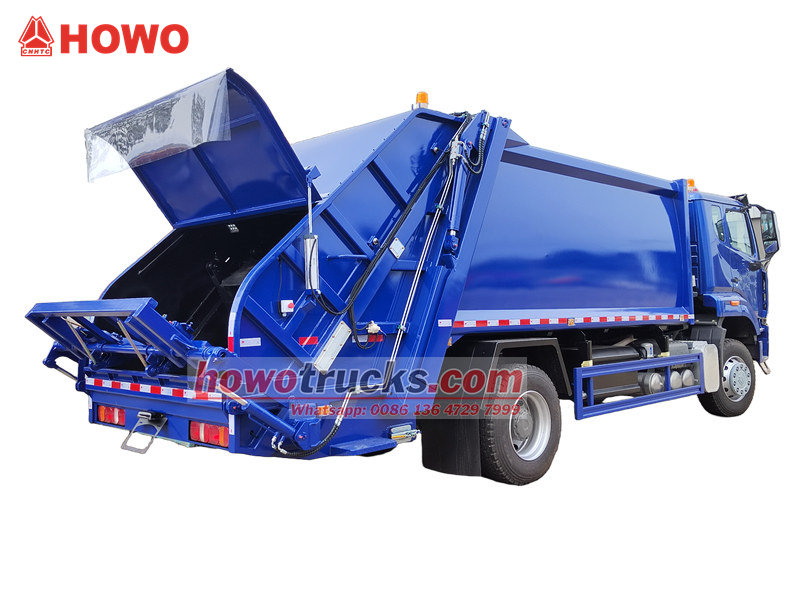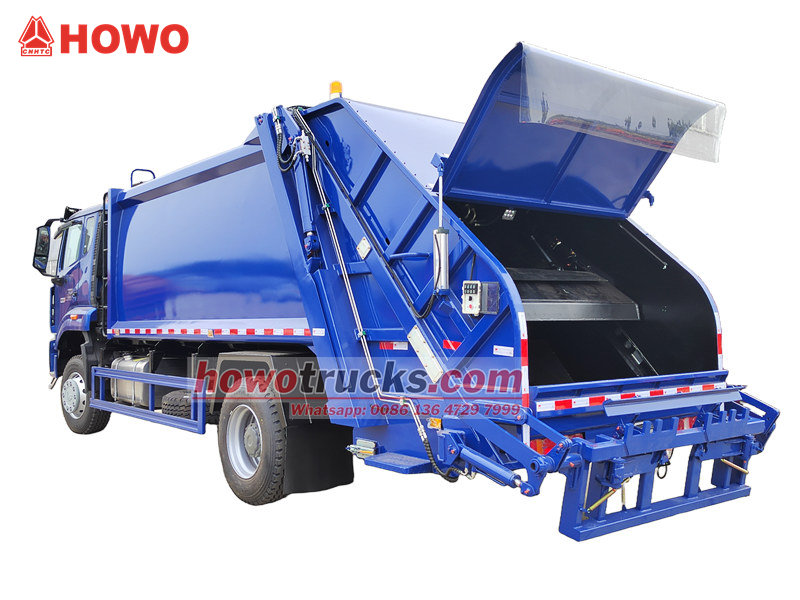 Camión recolector de basura Howo de 15 m³ con compactación trasera.