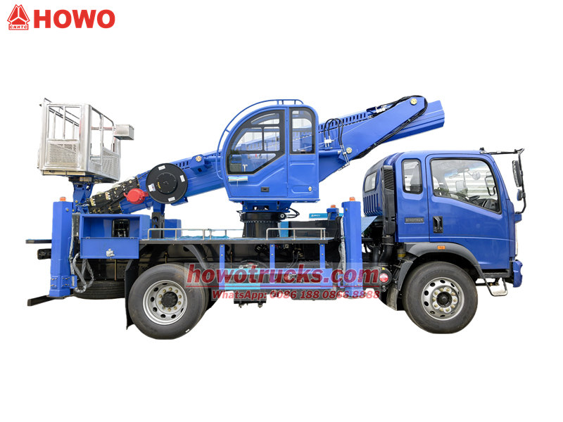 As a professional engineering vehicle, the Howo 18-meter articulated platform aerial truck is designed to combine reliable technical performance with comprehensive safety protection, making it suitable for various high-altitude operation scenarios. In terms of basic chassis and power configuration, the truck adopts the Howo all-wheel drive chassis, which lays a solid foundation for its flexible operation in complex road conditions. Equipped with an ISF3.8S3154 engine, it can output a maximum power of 154 horsepower.