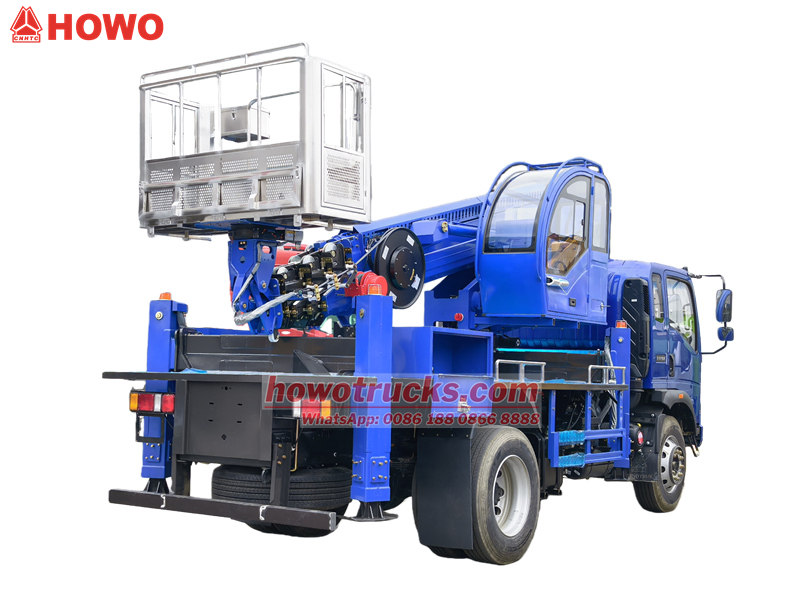 Focusing on the core operation performance, the Howo light-duty aerial platform truck has outstanding indicators in working height and radius. It boasts a maximum working height of 22 meters and a maximum operating radius of 12 meters, which can meet the needs of most high-altitude operations. Its unique H-shaped hydraulic outrigger design, combined with a two-way hydraulic locking mechanism, further enhances the stability and safety of the vehicle when it is parked and working, avoiding potential risks caused by instability.