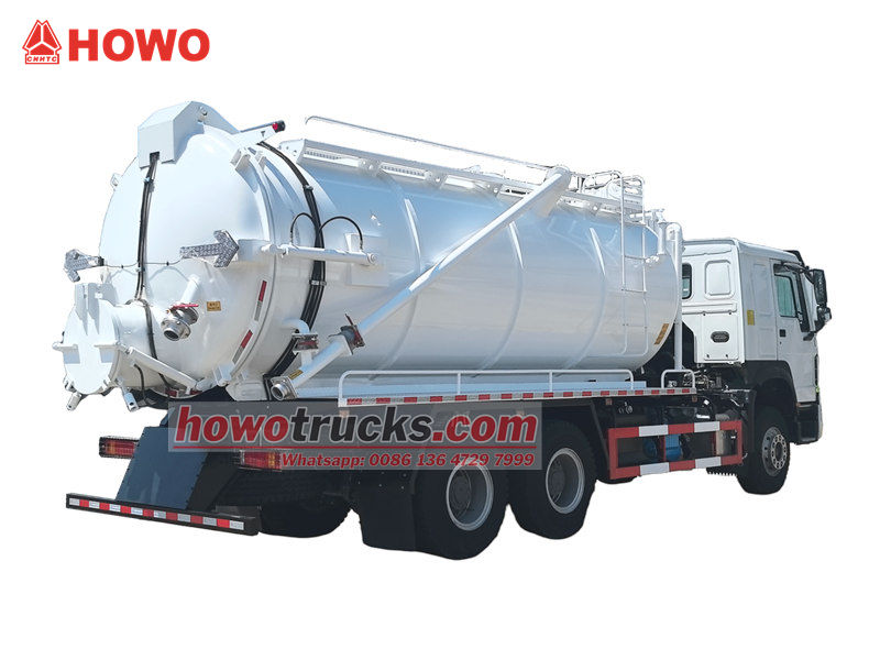 ●El camión bomba de succión por vacío Howo de 20 m³ es un vehículo de saneamiento especializado que combina la limpieza, la recolección y el transporte de residuos. Se utiliza ampliamente en el mantenimiento diario de municipios, empresas industriales y mineras, y propiedades comunitarias.