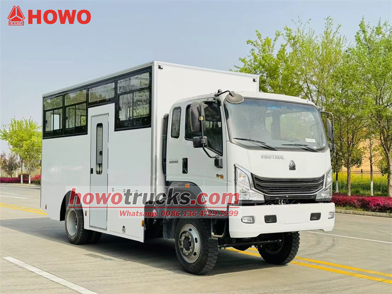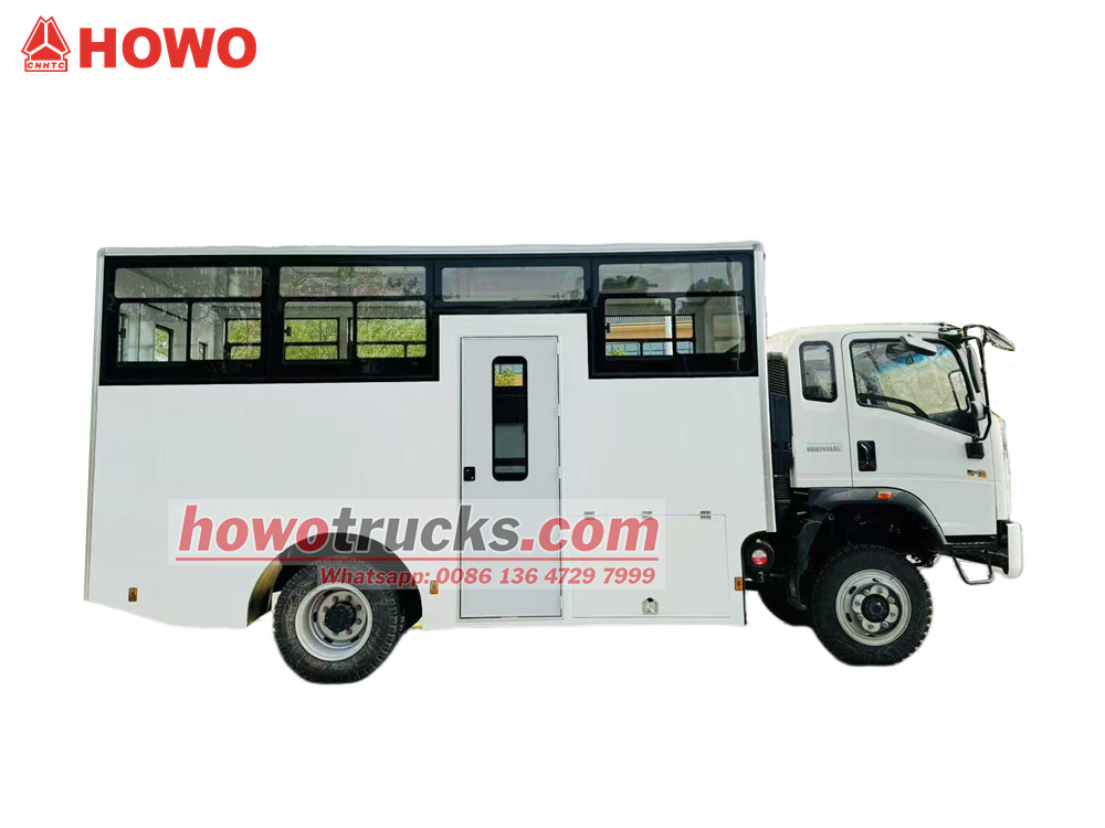 El camión de transporte de tropas HOWO 4x4 con tracción integral está modificado sobre el chasis del camión ligero HOWO 1880 de tracción semiintegral, con una distancia entre ejes de 3360 mm, equipado con un motor Weichai WP3NQ140E50 y una caja de cambios WLY6G120. La carrocería es una caja con dos filas de asientos largos con capacidad para 15 soldados. Cuenta con ventanas laterales y una ventana pequeña en el portón trasero. También dispone de una puerta individual en el lateral derecho y una puerta doble en el portón trasero para facilitar el acceso. El vehículo está equipado con aire acondicionado.