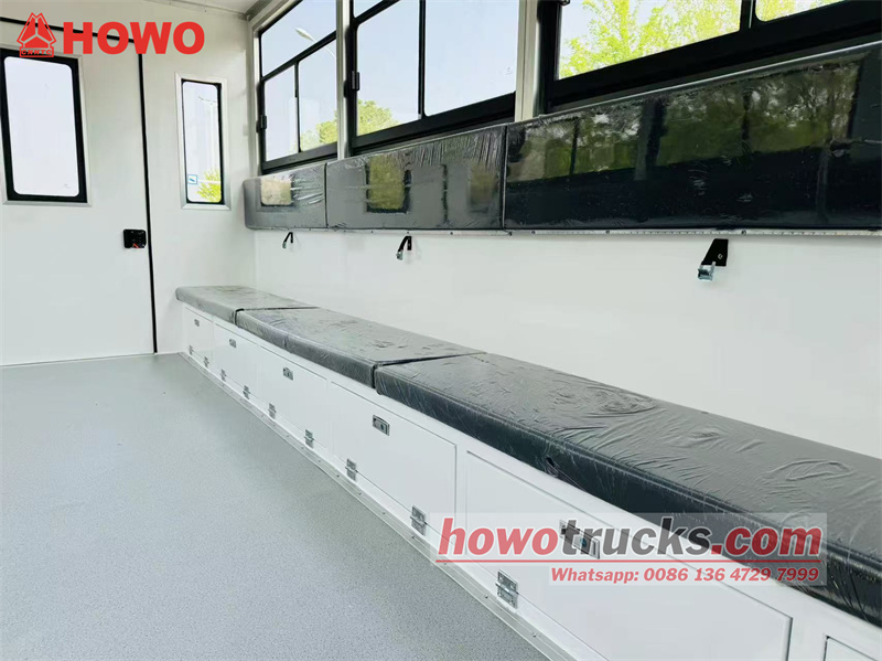4200En el ámbito del transporte militar y el apoyo de emergencia, un vehículo de transporte de tropas con un rendimiento excelente y una gran adaptabilidad es clave para garantizar la correcta ejecución de la misión. Camión Howo 4x4 para el transporte de tropas y soldados. Es un equipo muy potente. Posee una adaptabilidad excepcional y su sistema de tracción integral, junto con un chasis robusto, le permite sortear con facilidad terrenos complejos como caminos de montaña accidentados y zonas pantanosas. El potente motor Weichai, perfectamente acoplado a la caja de cambios de alta calidad, garantiza un transporte eficiente. Es cómodo y espacioso, con dos filas de asientos ergonómicos tipo banco y aire acondicionado. Es seguro y fiable, gracias a su diseño con múltiples ventanas que proporciona una amplia visibilidad y una carrocería de alta resistencia, a prueba de presión e impactos. Además, es muy práctico, con una puerta lateral derecha y una puerta trasera doble que facilita el acceso y descenso rápido del personal, así como la rápida puesta en marcha en caso de emergencia.