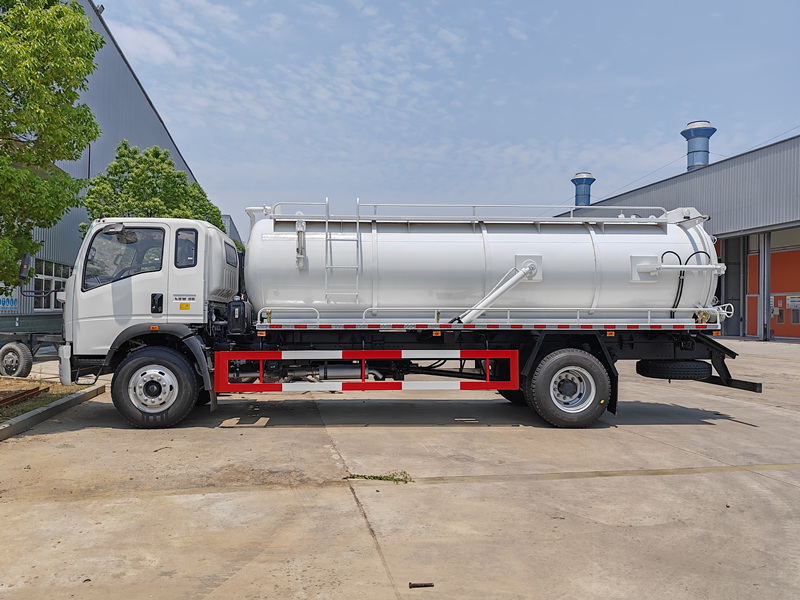 Camión de succión de aguas residuales HOWO de 5 metros cúbicos, adopta la cabina media HOWO Commander 2080, distancia entre ejes de 4200 mm, equipado conCummins Motor ISF3.8s3168 de 168 caballos de fuerza, caja de cambios WLY6G70, la carrocería superior es un tanque de succión de aguas residuales de 5 metros cúbicos, material de acero al carbono, equipado con bomba de vacío Jurop PN106D, tubería de aguas residuales, escalera, válvula de control de operación (control de elevación del tanque y la compuerta trasera), tanque de aceite hidráulico, válvula de descarga de la compuerta trasera, etc.