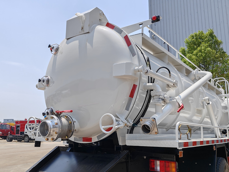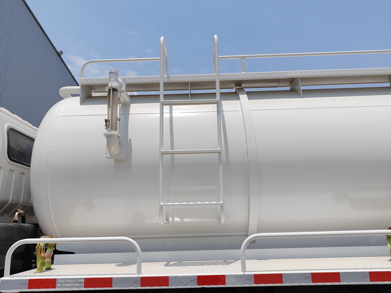 • Sistema de descarga: En la parte trasera se instala una válvula de descarga de apertura rápida DN200, que permite el vaciado tanto por gravedad como por vacío para una descarga completa y sin residuos. Dispositivos auxiliares: Escalera estándar y luces de advertencia; su diseño detallado facilita su uso.