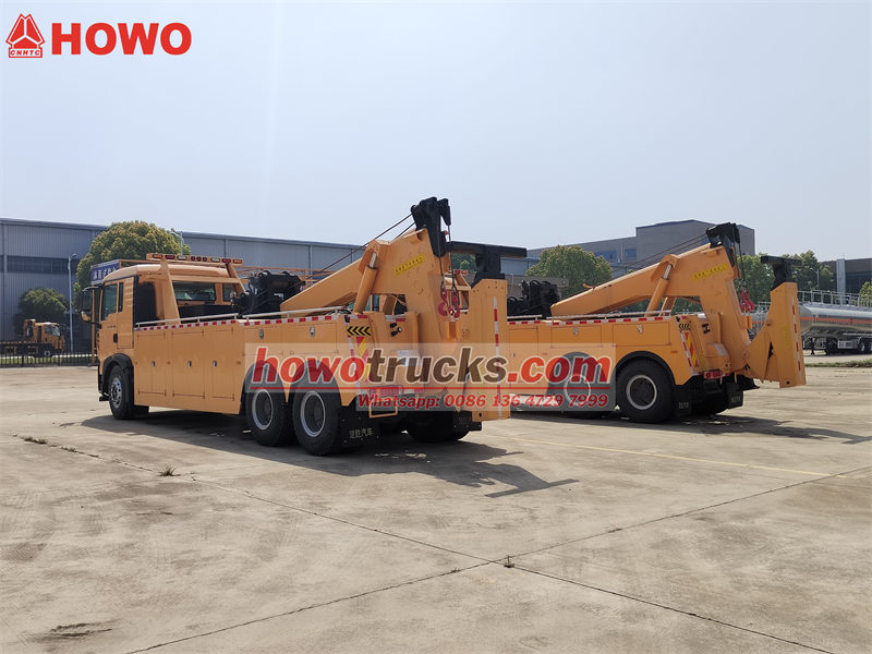 La grúa Howo 6x4 está equipada con un robusto sistema de estabilizadores hidráulicos (con capacidad para levantar 12,5 toneladas por estabilizador), que proporciona una amplia superficie de apoyo y garantiza la seguridad y estabilidad en operaciones de rescate de gran envergadura. La lujosa cabina dormitorio amarilla de una fila y media (otros colores disponibles), el depósito de combustible de gran capacidad de 400 litros, el sistema eléctrico de 24 V, la completa iluminación de advertencia (luces de emergencia y luces estroboscópicas), la caja de herramientas y otros accesorios la convierten en un equipo profesional de remolque y rescate de gran tamaño, con funciones completas y un potente rendimiento.