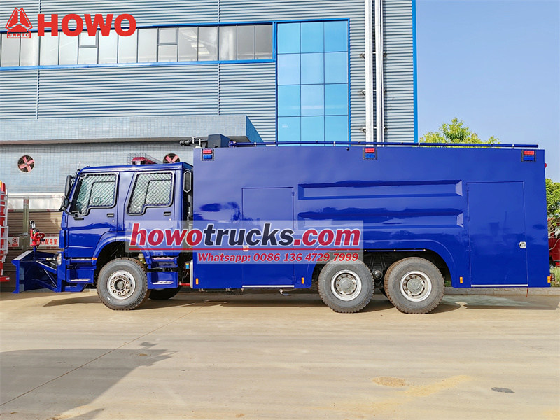 Los conductores deben poseer tanto habilidades de conducción especializadas como capacidad de respuesta ante emergencias, con especial énfasis en las medidas de seguridad preventivas y las operaciones colaborativas a distancia. La cisterna del camión antidisturbios Howo Fire Control Riot Truck está fabricada en acero al carbono de alta resistencia con un espesor de 6 a 10 mm. Tiene una capacidad de 6000 litros de agua y 2000 litros de espuma, lo que la convierte en un equipo de seguridad indispensable para la industria petrolera, química y otros sectores.