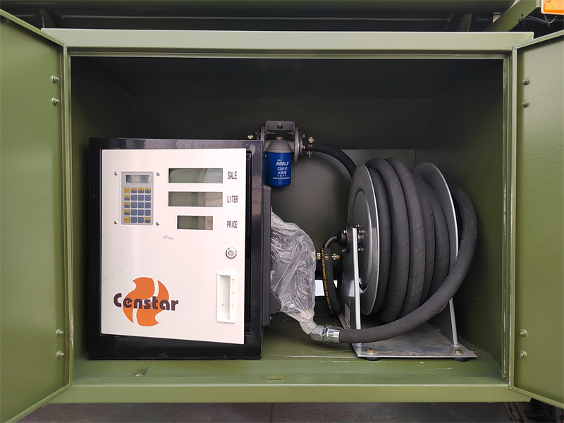 ★ Depósito de combustible: ◇Tanque de combustible de acero al carbono de 4 mm de espesor, con 2 compartimentos para el almacenamiento y transporte de diferentes tipos de productos petrolíferos.