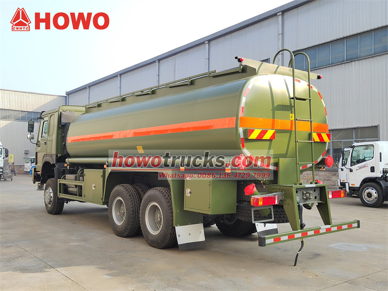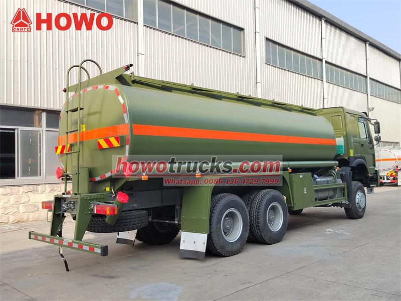 El camión cisterna HOWO 6×6 está diseñado sobre el chasis de tracción integral SINOTRUK HOWO 6×6. Su capacidad de almacenamiento alcanza los 18.000 litros y está fabricado en acero al carbono de alta calidad con tratamiento anticorrosión interno para prolongar su vida útil. El tanque se divide en dos compartimentos, lo que permite almacenar y transportar diferentes tipos de productos petrolíferos. Gracias a su excelente rendimiento todoterreno, el vehículo puede adaptarse a terrenos difíciles como barro y grava.