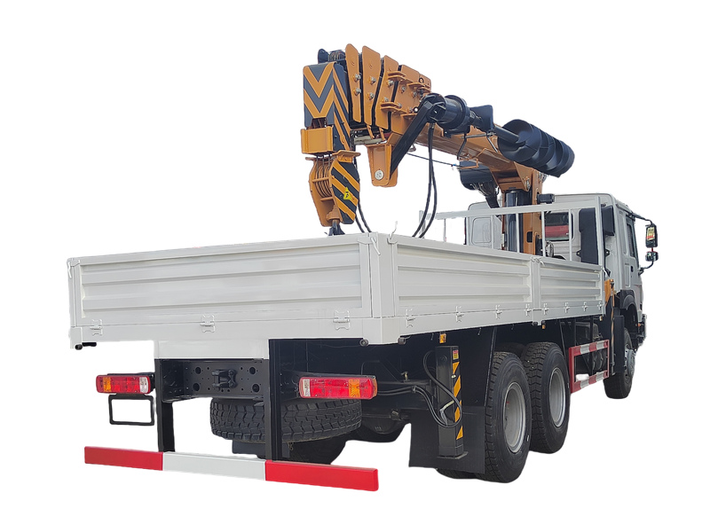 9000×2La grúa montada sobre camión HOWO 6×6 es un vehículo de ingeniería multifuncional basado en el chasis de camión pesado SINOTRUK HOWO AWD, que combina funciones de elevación, transporte y perforación. Equipada con un motor diésel turboalimentado Weichai de 336 HP, ofrece una potencia robusta. El vehículo está equipado con una grúa telescópica de cuatro secciones modelo SQS300, que tiene una capacidad de elevación máxima de 12 toneladas y una altura operativa de 14 metros, con soporte para rotación completa de 360 grados. Además, está personalizada con una broca hidráulica de 400 mm de diámetro para operaciones de perforación de 3 metros de profundidad, lo que mejora significativamente la eficiencia en paisajismo y construcción de infraestructura. Debido a su chasis de tracción en las cuatro ruedas, sistema de estabilizadores hidráulicos de doble eje y diseño de refrigeración adaptativa al calor, Camión grúa HOWO 6×6 Demuestra una excepcional capacidad todoterreno y versatilidad en terrenos difíciles.