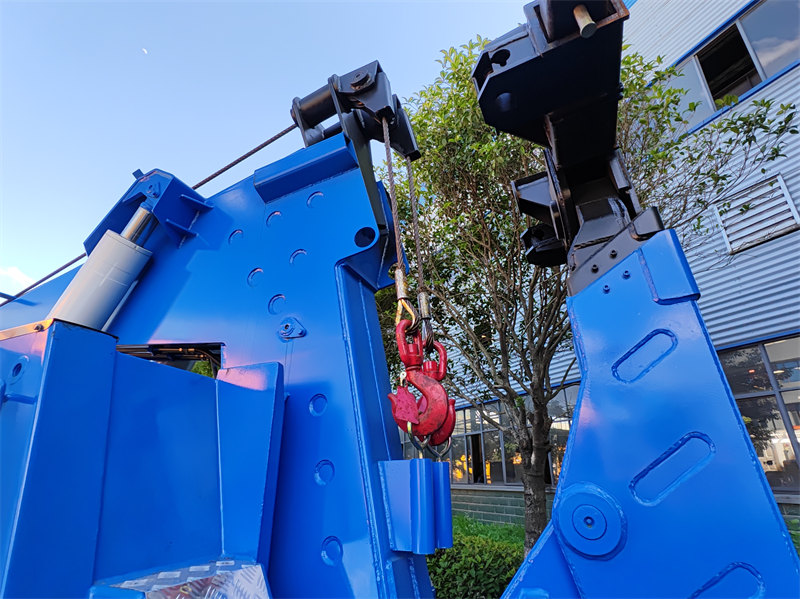 4. Flexible y adaptable: Gracias a su pluma telescópica y abatible, junto con un elevador inferior ajustable en múltiples direcciones, puede manejar eficazmente vehículos atascados en diversas posiciones y posturas, adaptándose a entornos complejos en la obra.