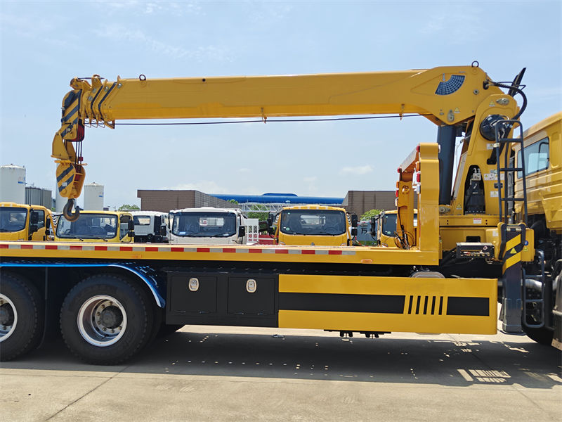 Este camión grúa de plataforma Howo con grúa de 8 toneladas es un vehículo especial versátil y de excelente diseño. Está equipado con un motor diésel de la marca china Yuchai Engine, con una potencia de 260 CV, capaz de satisfacer diversas necesidades de trabajo. La nueva cabina de lujo M9 tiene capacidad para tres personas y cuenta con aire acondicionado, lo que proporciona un entorno de conducción confortable para conductores y operadores. La grúa es de pluma telescópica, con una capacidad máxima de elevación de 8000 kg, rotación completa de 360° y una altura máxima de elevación de 16,5 m.