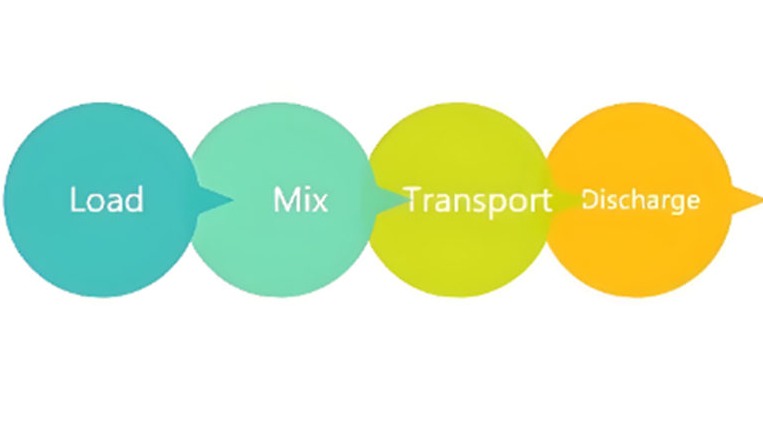 ▶ Transporte: Una vez mezclado el hormigón, el camión lo transporta a la obra. El tambor sigue girando durante el transporte para evitar que el hormigón fragüe.