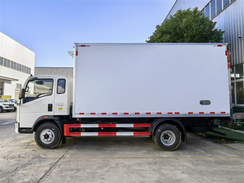 El Howo 6El camión frigorífico de toneladas es un vehículo diseñado específicamente para el transporte de larga distancia en cadena de frío. Está equipado con un Yuchai 140 CV 4 Motor de cilindros, que proporciona una potencia de salida robusta y estable para garantizar una eficiencia de transporte eficiente en diversas condiciones de la carretera. El camión frigorífico pesado Howo se combina con el KX 55La unidad de refrigeración 0 ajusta automáticamente la potencia de refrigeración según la temperatura interna y el tipo de carga, controlando con precisión la temperatura dentro del vehículo para satisfacer las necesidades de refrigeración de diferentes mercancías. Esta unidad incorpora tecnología de refrigeración avanzada y un sistema de enfriamiento eficiente, capaz de reducir rápidamente la temperatura dentro del vehículo y mantenerla estable, garantizando que la mercancía se conserve a la temperatura óptima durante el transporte.