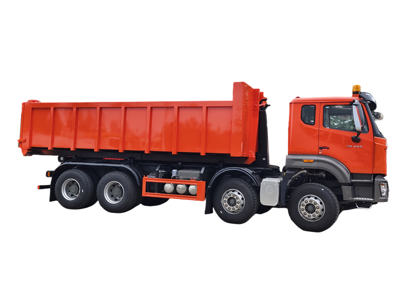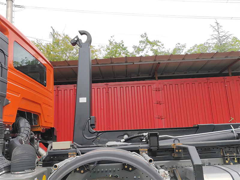 HW76 cabin, 6×6, 25 ton hook arm is optionalEl camión de basura HOWO de 20 toneladas con sistema de gancho elevador es un vehículo de saneamiento de gran tamaño, basado en un chasis de camión de servicio pesado. Está equipado con un sistema de brazo de gancho hidráulico que permite la carga, descarga y vaciado automático e independiente de contenedores de basura. Construido sobre el chasis HOWO NX 8×4 y propulsado por un motor Weichai de 400 caballos de fuerza, tiene una masa total de 31 000 kg y está diseñado para manipular contenedores de basura de 15 a 20 metros cúbicos. El sistema de brazo de gancho de 20 toneladas, controlado mediante mecanismos hidráulicos, completa un ciclo operativo en menos de 45 segundos, lo que demuestra importantes ventajas de eficiencia en escenarios de transferencia de basura y transporte cíclico de múltiples contenedores.