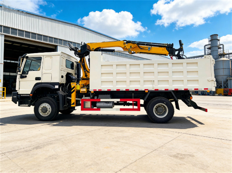 Este camión volquete pesado Howo con grúa está construido sobre el chasis todoterreno Howo, equipado con un motor diésel WP10.340E22 y una caja de cambios HW19710 de 10 velocidades. Ofrece un gran rendimiento y se adapta a condiciones de trabajo complejas. Está equipado con una grúa CS Trucks con función de agarre integrada, con una capacidad de elevación máxima de 8 toneladas, que combina la elevación de cargas pesadas con una gran eficiencia en la manipulación de materiales.