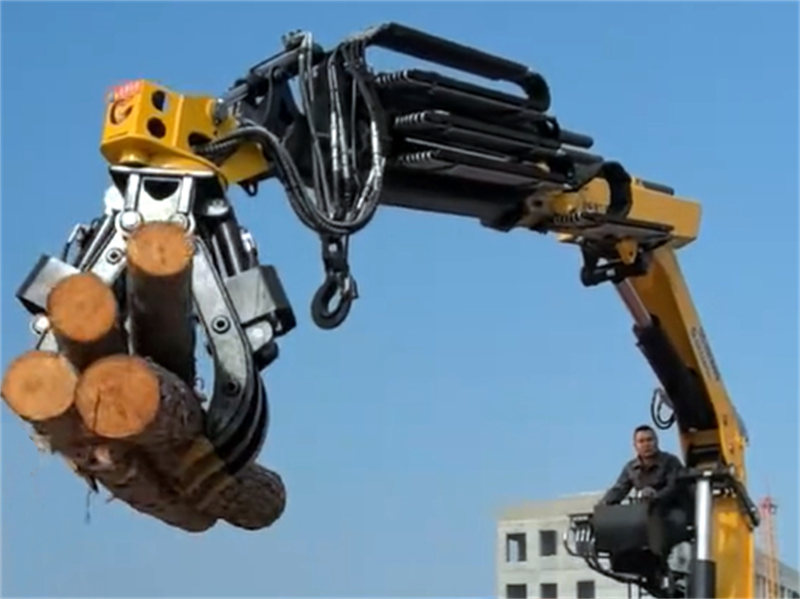 La grúa está equipada con una pinza, lo que aumenta su versatilidad para manipular diferentes tipos de materiales. Ya sea madera, chatarra u otros materiales, la pinza puede levantarlos, transportarlos y descargarlos de manera eficiente.