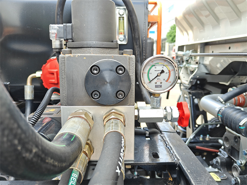 •Disposición de la boquilla: Equipado con 28 boquillas de alta precisión en forma de abanico en la parte trasera, ancho de pulverización de 4 metros, volumen de pulverización ajustable de 0,20 a 1,5 L/㎡, conmutación de fila simple/doble mediante válvula de control neumática para adaptarse a diferentes espesores de pavimento.