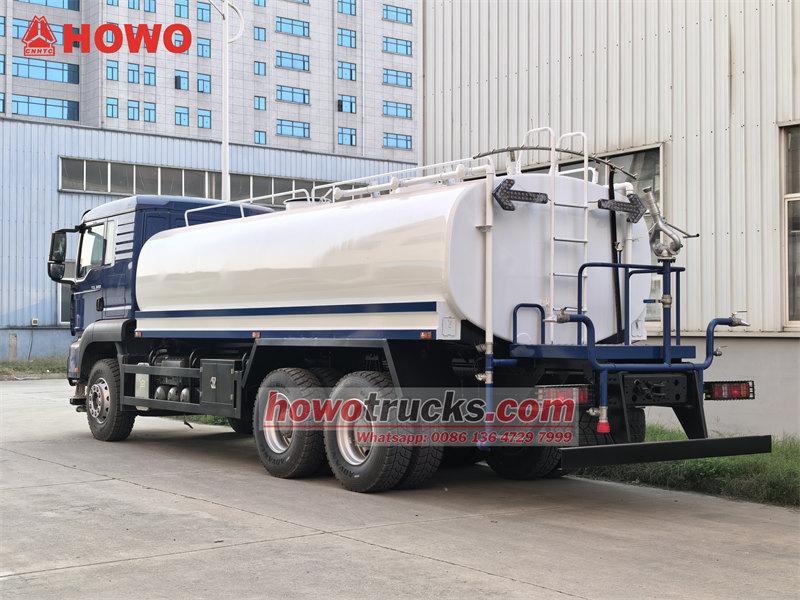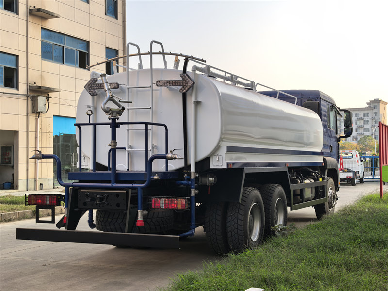 stainless steel tank, 6×6, RHD is optionalEl camión rociador de agua HOWO TX 18000L es un vehículo de saneamiento multifuncional de alta capacidad, construido sobre el chasis de servicio pesado HOWO TX, con un tanque de agua de 18 000 litros. Está propulsado por un motor diésel Weichai de 380 caballos de fuerza y una transmisión manual de 10 velocidades, que ofrece un rendimiento robusto y una alta capacidad de carga. El tanque está construido con acero al carbono de 5 mm y recubierto con una capa anticorrosión, mientras que su estructura interna incluye cuatro compartimentos y deflectores antisobretensión para mejorar la estabilidad de la conducción. El vehículo integra un sistema de bomba centrífuga Weilong, que permite el drenaje autocebante y el funcionamiento con un caudal de 60 m³/h. También cuenta con un sistema de rociado multimodo, que incluye lavado frontal, rociado trasero, rociado lateral y un cañón de agua a alta presión con un alcance de 28 metros, lo que lo hace adecuado para diversas aplicaciones como reverdecimiento urbano, supresión de polvo, refrigeración y extinción de incendios de emergencia.