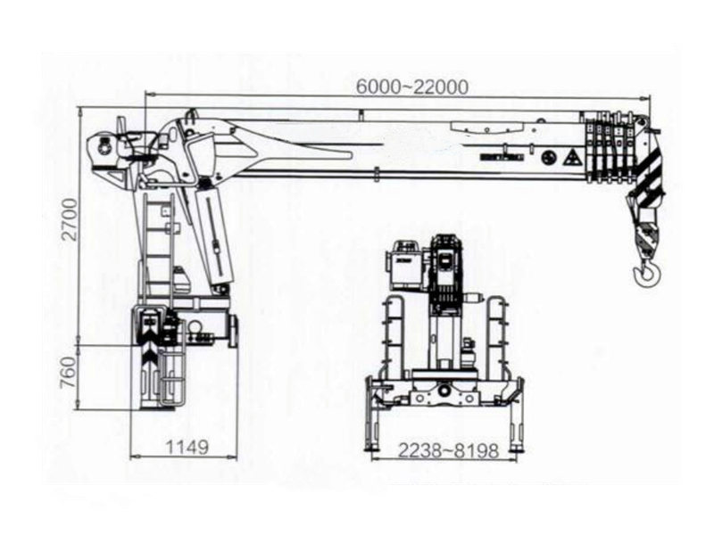 El peso de la grúa es 3570 kg y el espacio de instalación es 2350 mm. El panel de control se puede seleccionar en inglés u otros idiomas para facilitar su uso a usuarios con diferentes necesidades. Cómocamión de cargaGrúa montada de 20 toneladas También ofrece diversas configuraciones opcionales, como grúas con pluma telescópica, cajas basculantes hidráulicas, grosor y altura de la caja personalizados según las necesidades, y cajas de control remoto opcionales.