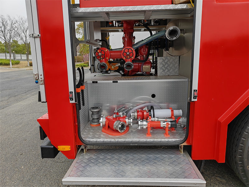 La bomba contra incendios es accionada por la toma de fuerza (PTO), con un rango de presión de 1,6-2,5 MPa y un caudal de 80-120 kg/s. El cañón contra incendios tiene una velocidad de pulverización de 60-100 kg/s y un alcance de 40-60 metros, lo que le permite responder eficazmente a diversas situaciones de incendio.Camión de bomberos Howo También está equipado con un juego completo de equipos estándar de rescate contra incendios, como palas, palancas, hachas y herramientas de corte, y las escaleras y los reflectores son opcionales.