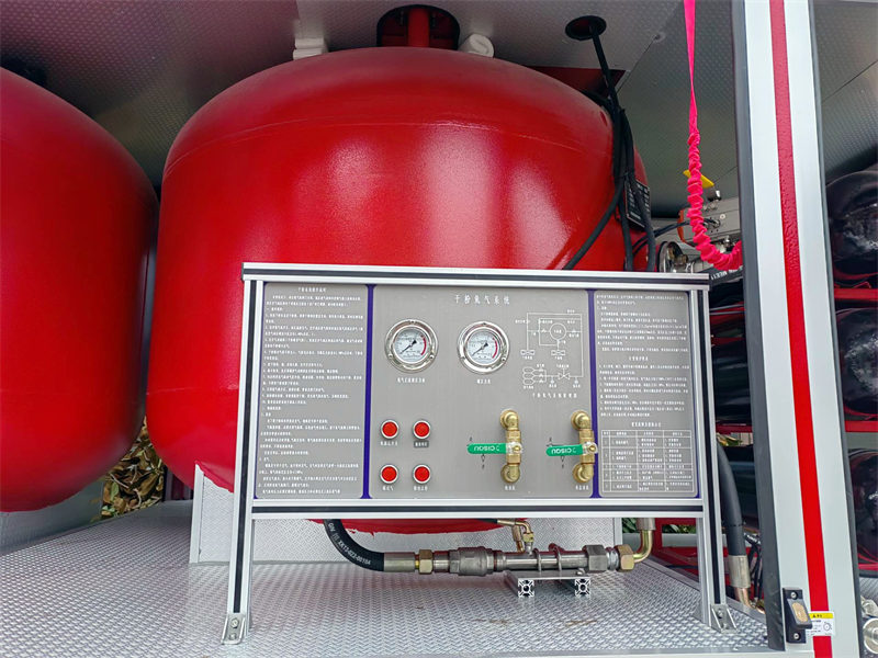 Este es un camión de bomberos de nitrógeno de polvo seco construido sobre Howo, TexasChasis. Está equipado con un potente Weichai 340HPmotor con una cilindrada de 9.839L. Adopta un 6X4modo de conducción y está equipado con un 10-caja de cambios de velocidad. La velocidad máxima puede alcanzar 95km/h, que puede adaptarse a diversas condiciones complejas de la carretera. En cuanto al sistema de protección contra incendios, el vehículo está equipado con 700 kgtanques de almacenamiento de polvo seco de acero al carbono y 6 unidades Cilindros de nitrógeno de 80 litros con una presión de diseño de 15 MPa. La bomba contra incendios es accionada por la toma de fuerza (PTO), con un rango de presión de 1,6 a 2,5 MPa y un caudal de 80 a 120 kg/s.