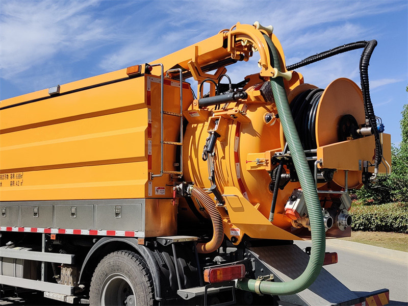 • Carrete de portón trasero: Equipada con un carrete de limpieza de alta presión, permite una rápida retracción y extensión, facilitando las operaciones de limpieza.