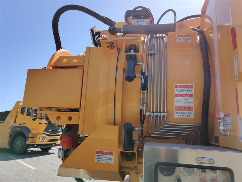 1. Sistema de succión al vacío: Una bomba de vacío Jurop PVT400 genera presión negativa, que luego se aspira hacia un tanque de acero al carbono de 6,7 metros cúbicos mediante un brazo de succión. En la parte superior del tanque se instala una válvula de rebose que activa automáticamente una alarma de desbordamiento y cierra el puerto de succión para evitar el reflujo. El brazo de succión es ajustable hidráulicamente para elevarlo, retraerlo y girarlo, adaptándose así a diversas posiciones de operación.