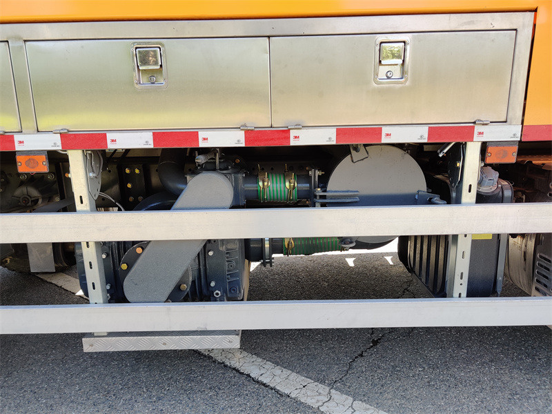 2. Sistema de limpieza a alta presión: Durante el funcionamiento, la toma de fuerza del chasis acciona una bomba de limpieza de alta presión 3N2-SZ, que presuriza el agua limpia del depósito y la descarga a través de las boquillas del carrete para limpiar las paredes internas de la tubería. El flujo de agua a alta velocidad genera una potente fuerza de impacto que elimina las manchas más difíciles.