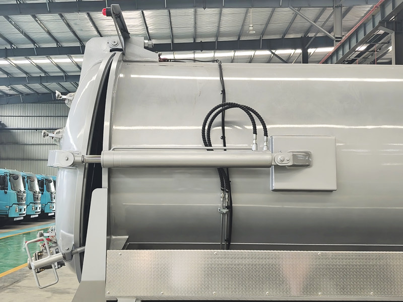 ●El vehículo está equipado con un sistema de descarga hidráulica que inclina todo el tanque para una descarga y limpieza completas, reduciendo los residuos y manteniendo el interior limpio. Todo el proceso está sellado, lo que evita la contaminación secundaria y la propagación de olores, garantizando un entorno de trabajo limpio e higiénico.
