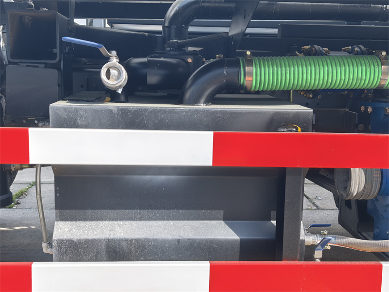 5. Auxiliary Components: Integrated water-gas separator, oil-gas separator, hydraulic oil tank, right-side ladder, tank top guardrail, transparent liquid level pipe (real-time monitoring of tank liquid level), tailgate discharge valve, and suction hose.