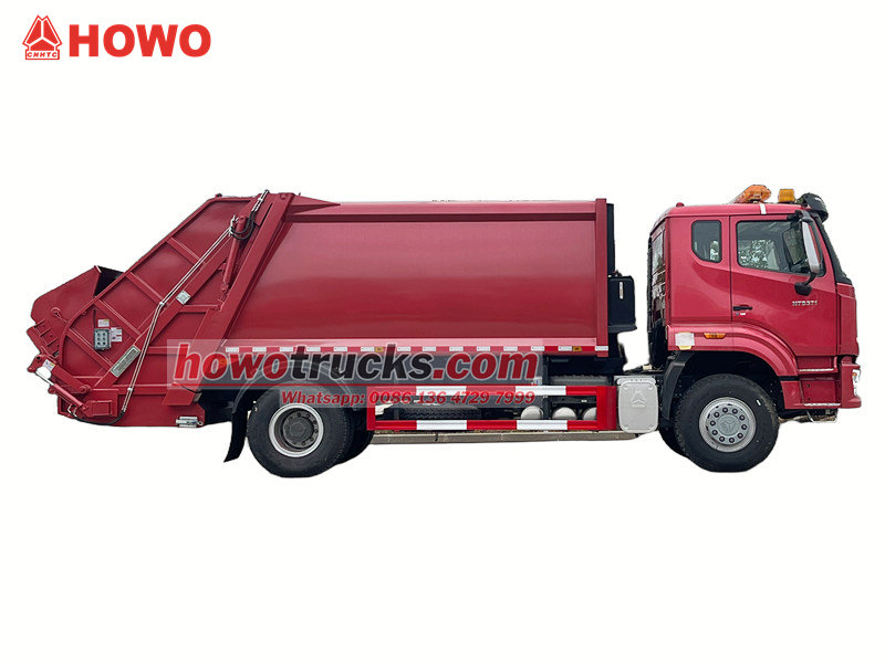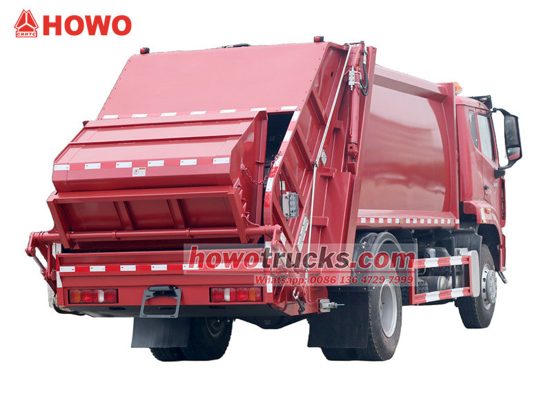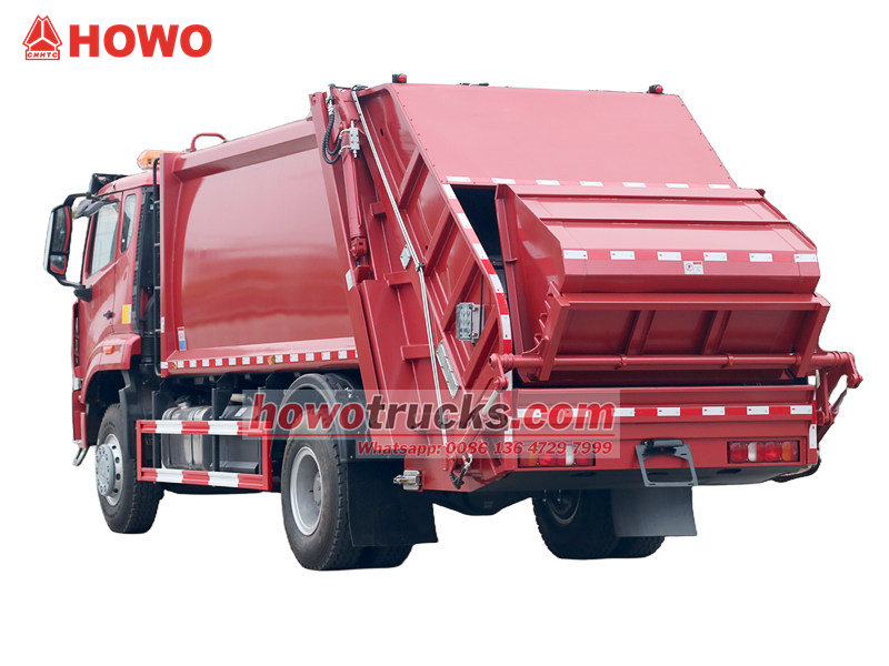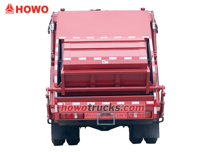 ●El camión compactador de residuos de carga trasera Howo utiliza un sistema de compresión avanzado para comprimir eficazmente los residuos, reduciendo su volumen, aumentando la capacidad del vehículo y maximizando la eficiencia del transporte.