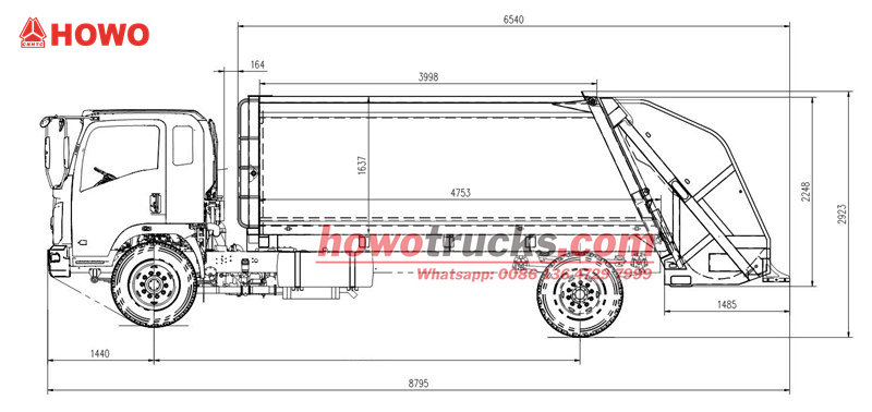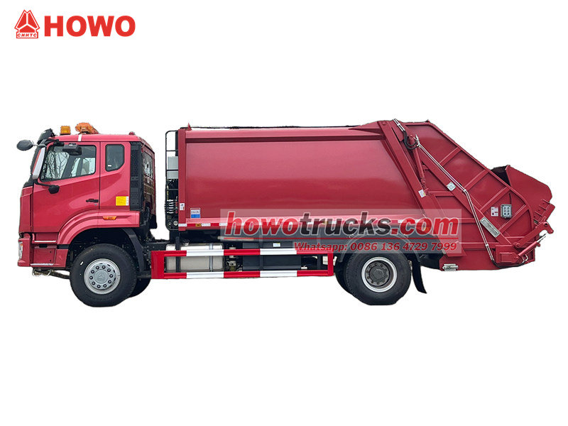 El Camión compactador de residuos de carga trasera Howo Está equipado con un dispositivo de carga automática en la parte trasera que levanta, tritura y compacta los residuos rápidamente, ahorrando tiempo y mano de obra. Al mismo tiempo, su excelente sellado previene eficazmente los derrames de residuos y las fugas de lixiviados durante el transporte, contribuyendo así a la creación de un entorno urbano limpio y eficiente.